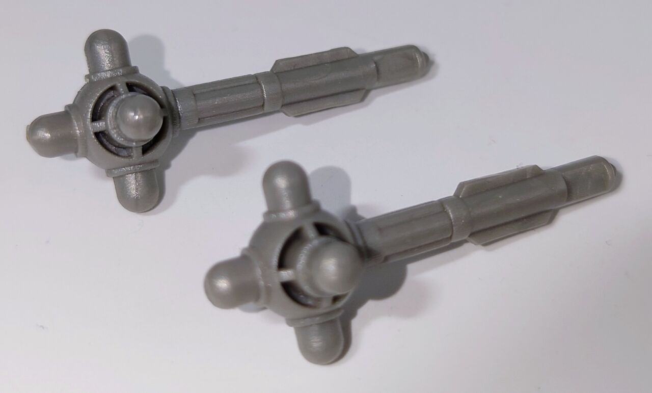 武器が付属。残念ながらタカラ版のように2つ同時に背中に接続はできません