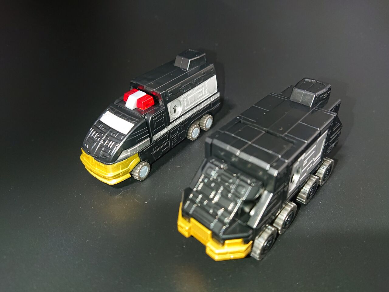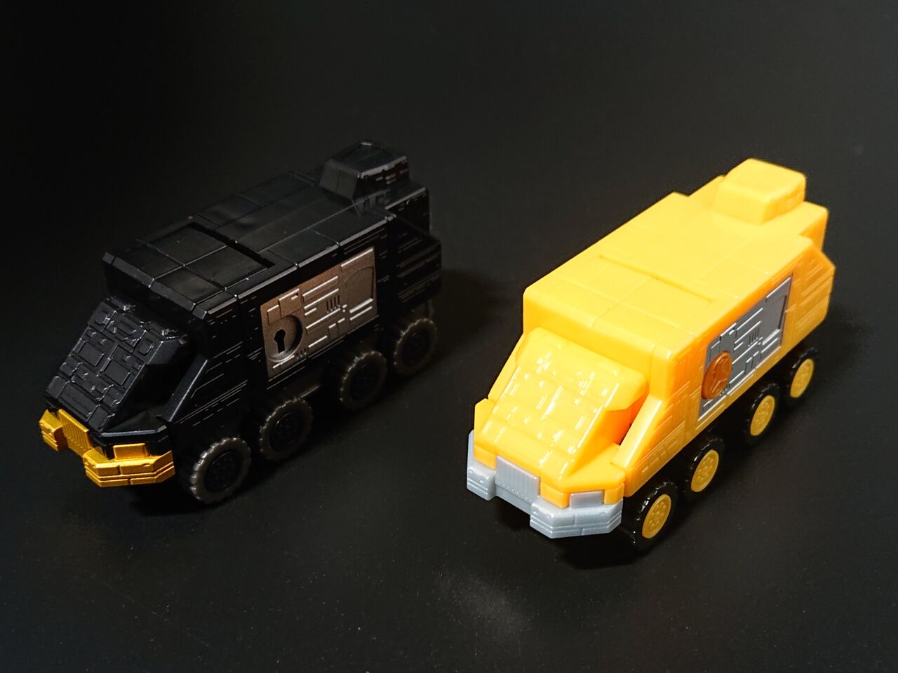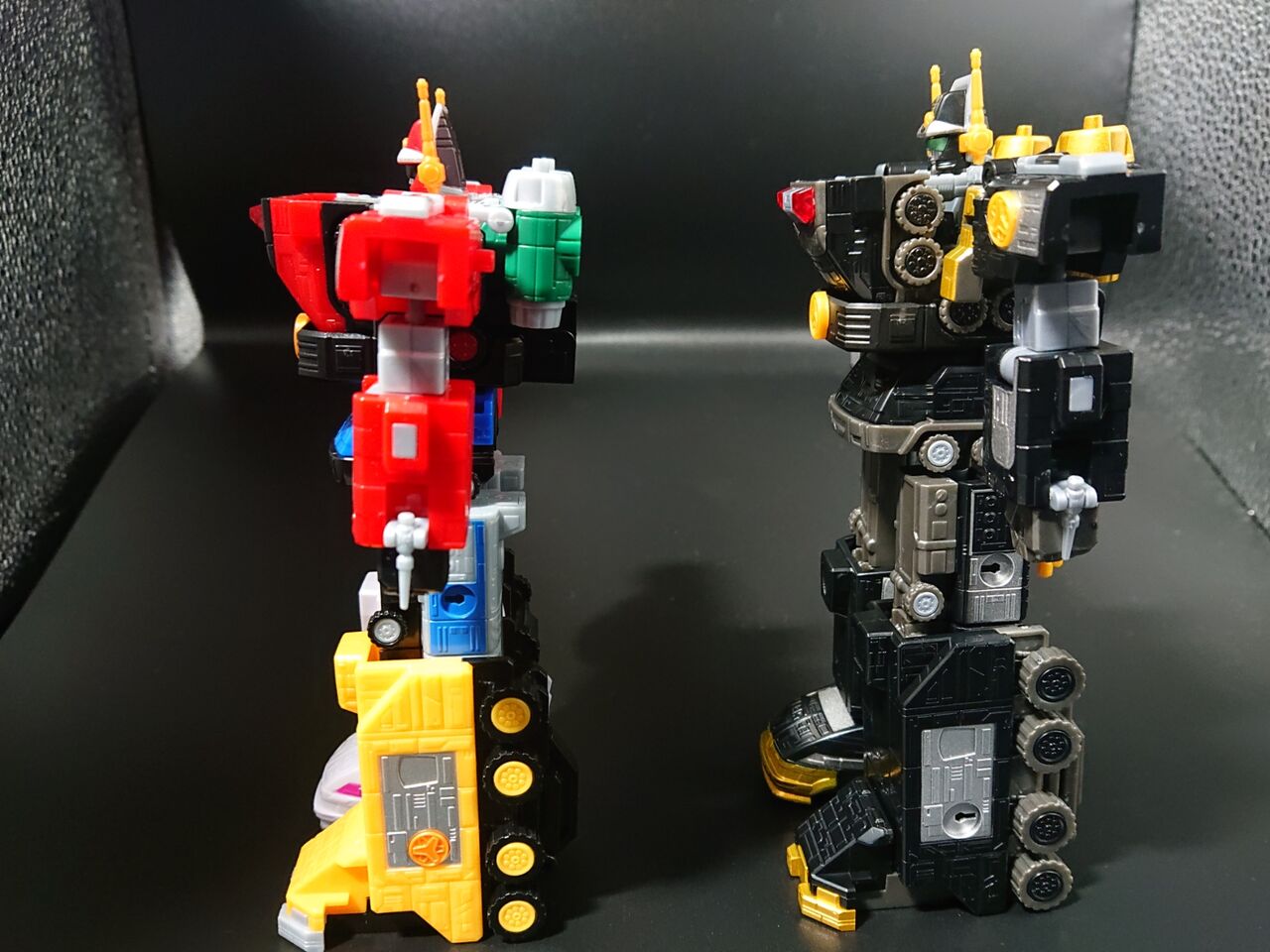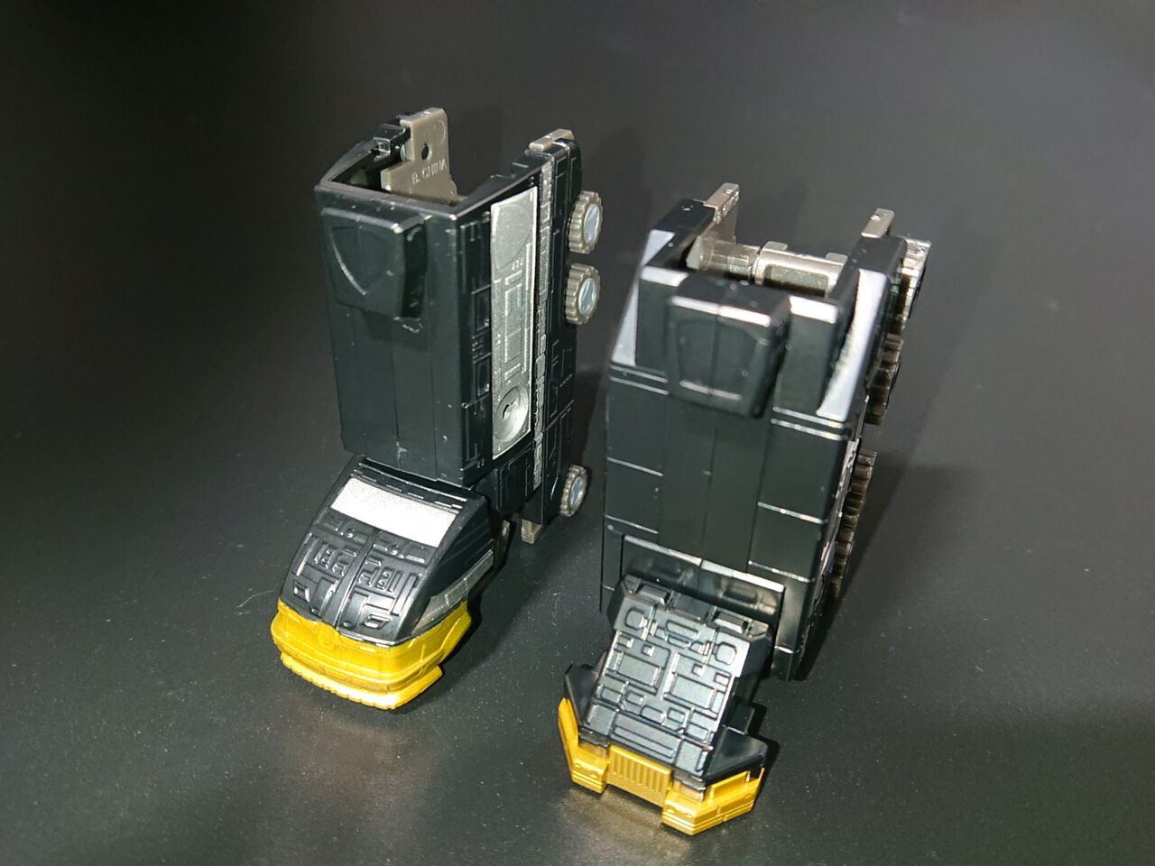 リカラー元のビクトリーロボと比較しつつ見てみます。金色の成形色もオレンジのゴールドからレモンイエローに近い色味に変更されています